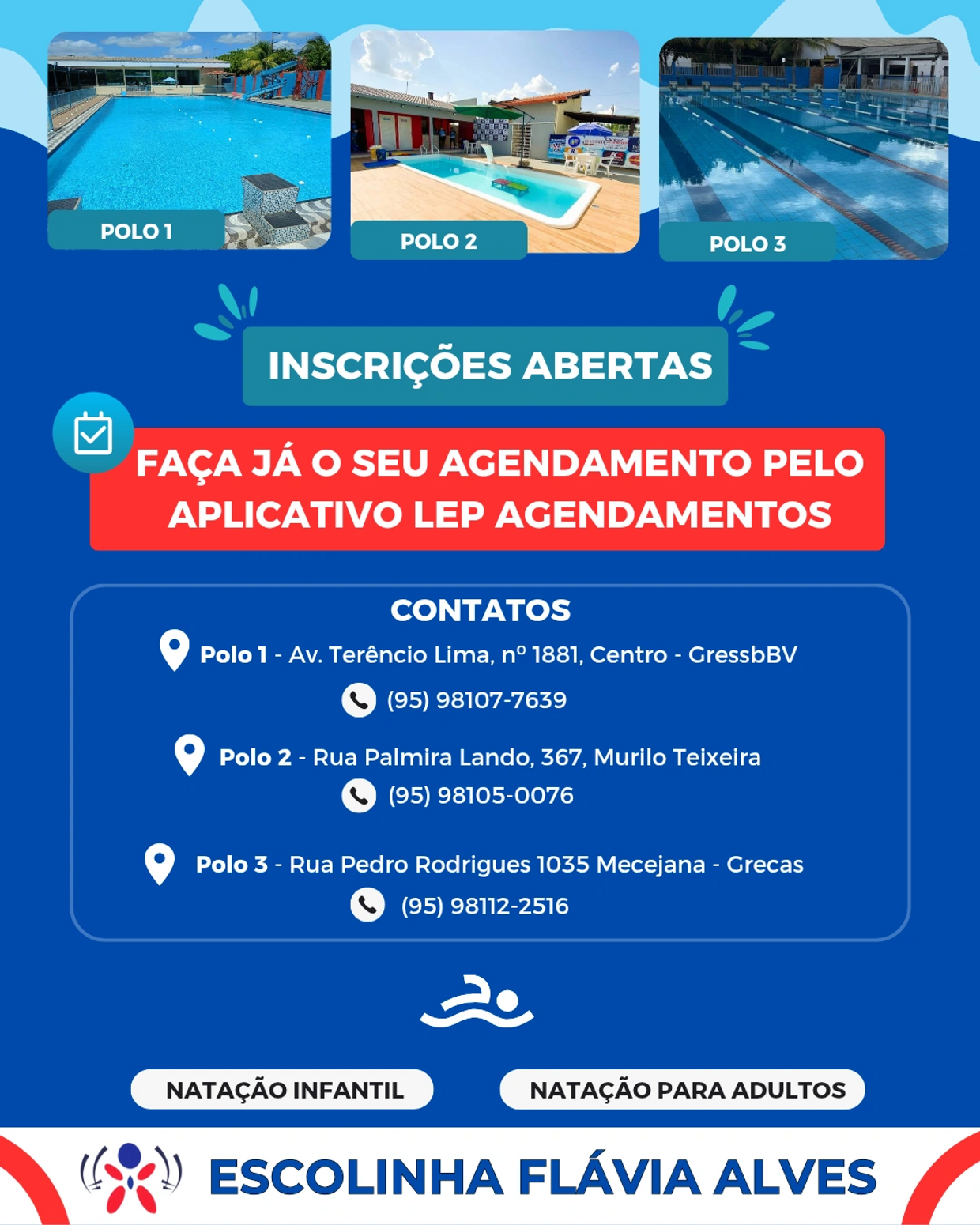 A Escola Flávia Alves se preocupa em atender o maior número de alunos possíveis, oferecendo a modalidade em zonas opostas, levando o esporte para as crianças e adolescentes de mais de 20 bairros da capital Boa Vista.